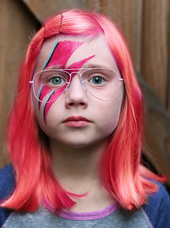 Thanks to my sweet little Gia for being so patient with me today with my sadness, blasting Bowie all day, and using her face as a palate to release some angst. The first time Gia's face has ever had real makeup on it.. it's in the form of Ziggy Stardust.